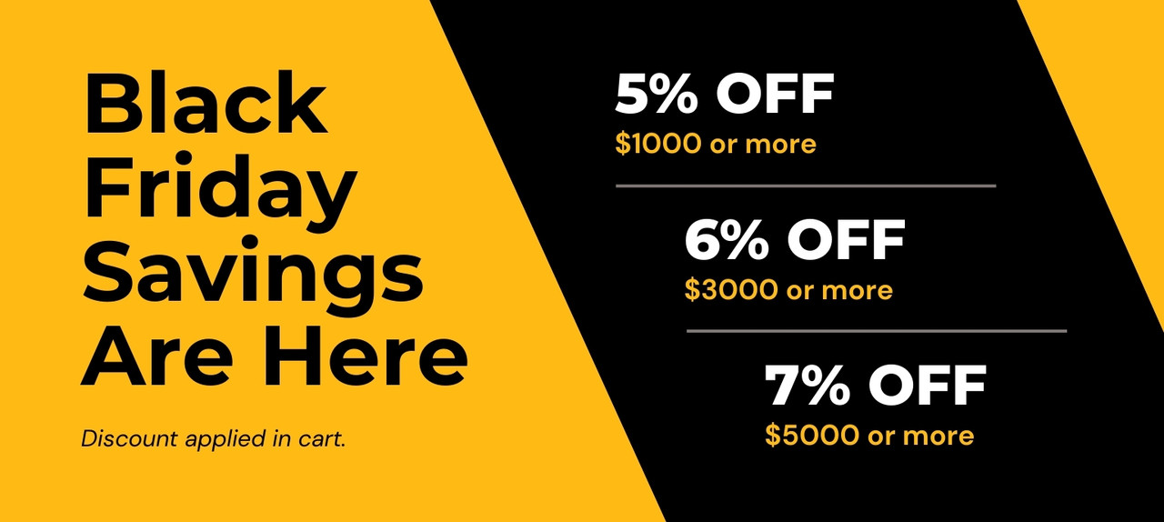 Black Friday Savings! 5% Off $1,000 | 6% Off $3,000 | 7% Off $5,000. Discount applied in cart.